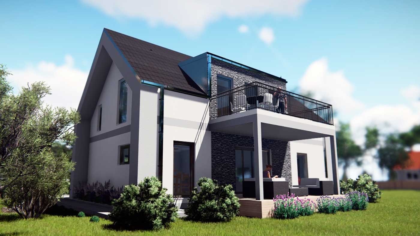 08 Luna - skicaLuna is a beautiful example of a modern house with interesting details and finishes, suitable for a larger family in the urban center of the city as well as in the countryside.
